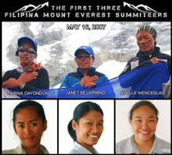 The 3 Filipinas successfully reached the summit of Mt. Everest and established a world record to be the first and only women in the history of Mt. Everest to traverse - climb up - from Tibet, Northside, and descend down to Nepal, the South side. A record that has never been repeated yet until this day.